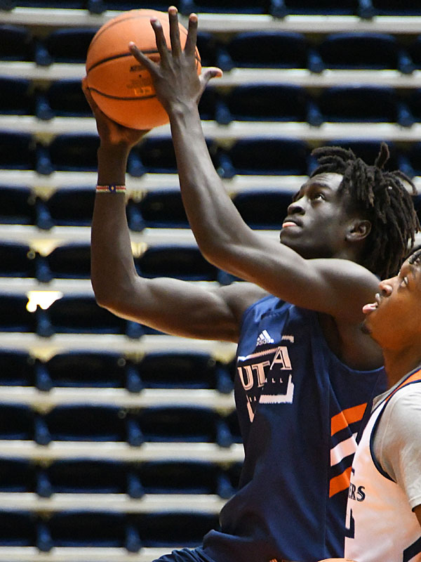 Aleu-Aleu-UTSA-basketball-20210929-2595 Published September 30, 2021 at 600 × 800 in Aleu-Aleu-UTSA-basketball-20210929-2595 Aleu Aleu is a 6-foot-8 junior guard/forward who comes to the UTSA men’s basketball team from Temple Community College. – photo by Joe Alexander Aleu Aleu is a 6-foot-8 junior guard/forward who comes to the UTSA men’s basketball team from Temple Community College. – photo by Joe Alexander