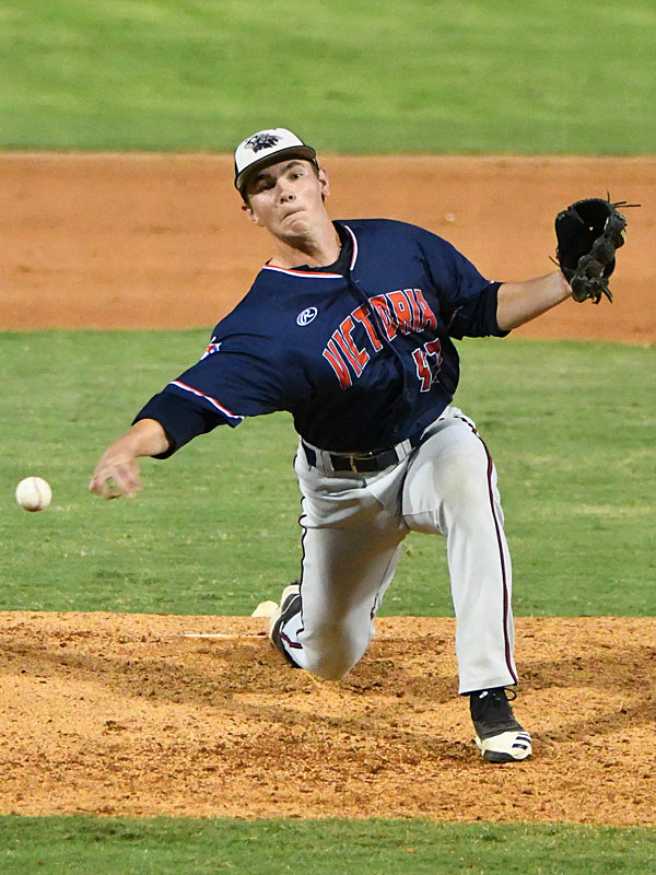 UTSA pitcher Jack Engelmann threw two innings of scoreless relief for the Victoria Generals against the Flying Chanclas on Sunday at Wolff Stadium. – photo by Joe Alexander