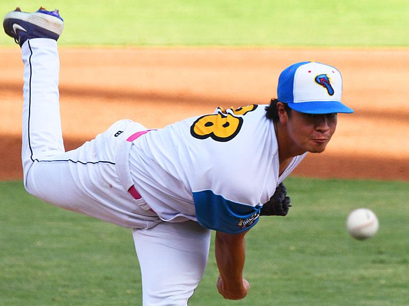 Flying Chanclas starter Marcelo Perez pitched 4.0 scoreless innings on three hits with five strikeouts and three walks on Wednesday against the Brazos Valley Bombers at Wolff Stadium. – photo by Joe Alexander