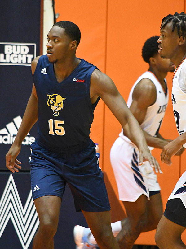 Florida International’s Clevon Brown is from San Antonio and Churchill High School. He had 12 points, 3 rebounds and 3 blocks on Thursday, Jan. 27, 2022, against UTSA. – photo by Joe Alexander