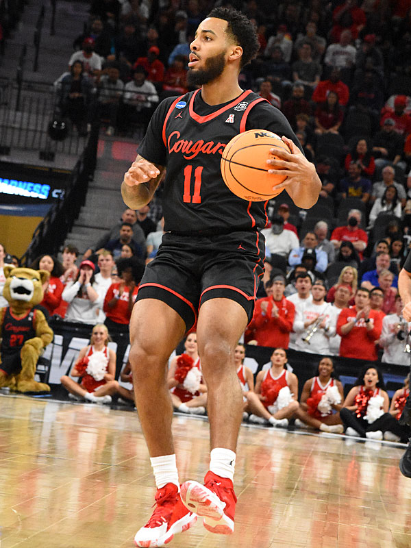 Houston’s Kyler Edwards. No. 5 seed Houston upset No. 1 seed Arizona 72-60 in the NCAA tournament South Region Sweet 16 on Thursday, March 24, 2022, at the AT&T Center. – photo by Joe Alexander