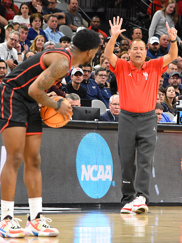 Houston coach Kelvin Sampson. No. 5 seed Houston upset No. 1 seed Arizona 72-60 in the NCAA tournament South Region Sweet 16 on Thursday, March 24, 2022, at the AT&T Center. – photo by Joe Alexander