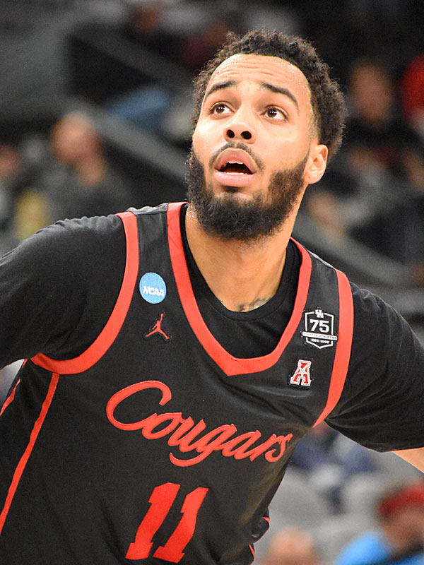 Houston’s Kyler Edwards. No. 5 seed Houston upset No. 1 seed Arizona 72-60 in the NCAA tournament South Region Sweet 16 on Thursday, March 24, 2022, at the AT&T Center. – photo by Joe Alexander