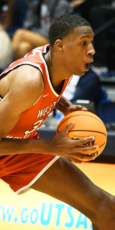 Western Kentucky’s Jamarion Sharp playing against UTSA in Conference USA men’s basketball on Saturday, Feb. 12, 2022, at the Convocation Center. – photo by Joe Alexander
