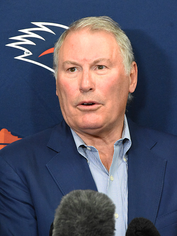 American Athletic Conference commissioner Mike Aresco and UTSA athletics director Lisa Campos talked to the media on Wednesday, July 19, 2023, at the Alamodome. – Photo by Joe Alexander
