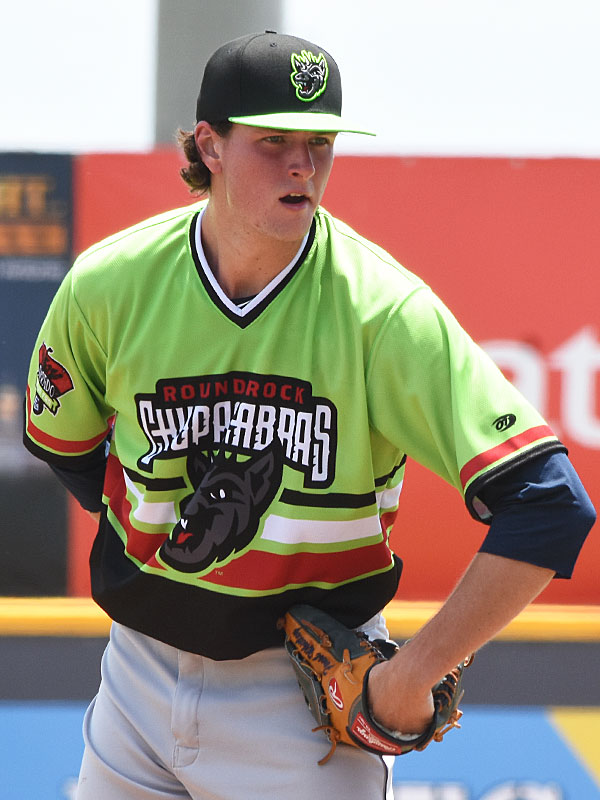 Former Alamo High School star Forrest Whitley pitched for the Round Rock Express against the San Antonio Missions in May 2019 at Wolff Stadium. – photo by Joe Alexander
