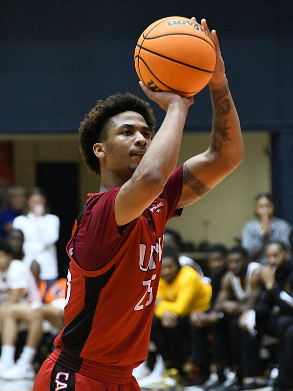 Trey Miller hits the first of his two free throws in the final seconds for the winning points as as UIW beat Grambling State 63-61 in men’s basketball on Sunday, Nov. 27, 2022, at the UTSA Convocation Center. – Photo by Joe Alexander
