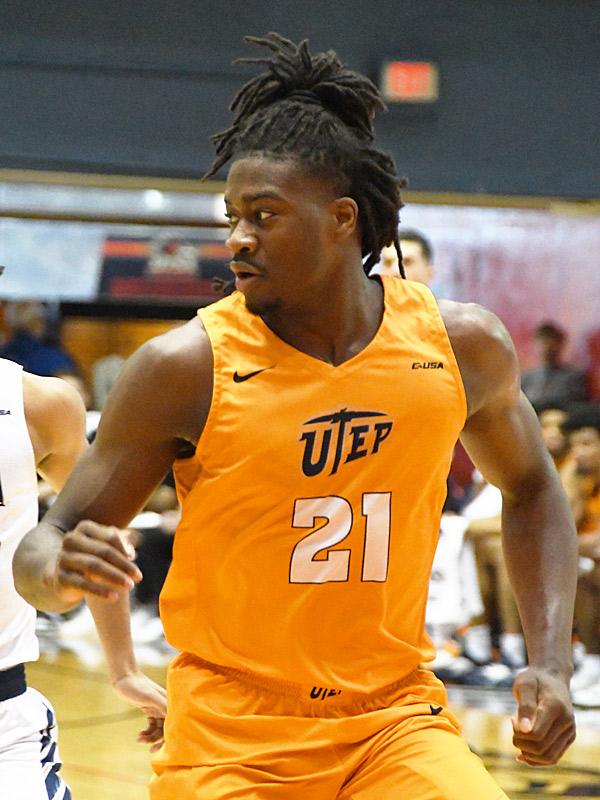 UTEP’s Ze’Rik Onyema, who played at Jay High School in San Antonio, at the Miners’ game against UTSA at the Convocation Center on Feb. 11, 2023. – Photo by Joe Alexander