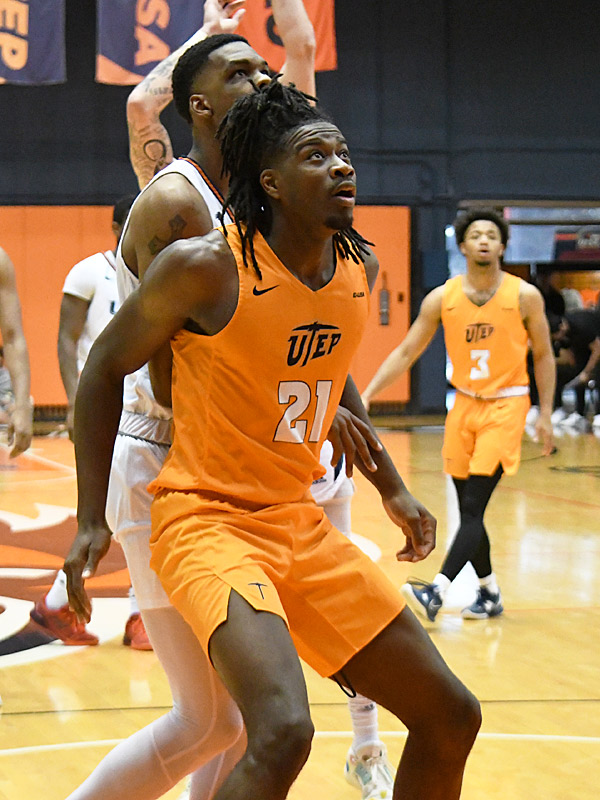 UTEP’s Ze’Rik Onyema, who played at Jay High School in San Antonio, at the Miners’ game against UTSA at the Convocation Center on Feb. 11, 2023. – Photo by Joe Alexander