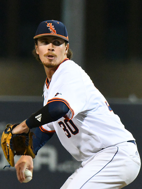 John Chomko pitched two-plus scoreless innings in UTSA’s 14-8 victory over Texas State on Tuesday, April 26, 2022, at Roadrunner Field. – photo by Joe Alexander