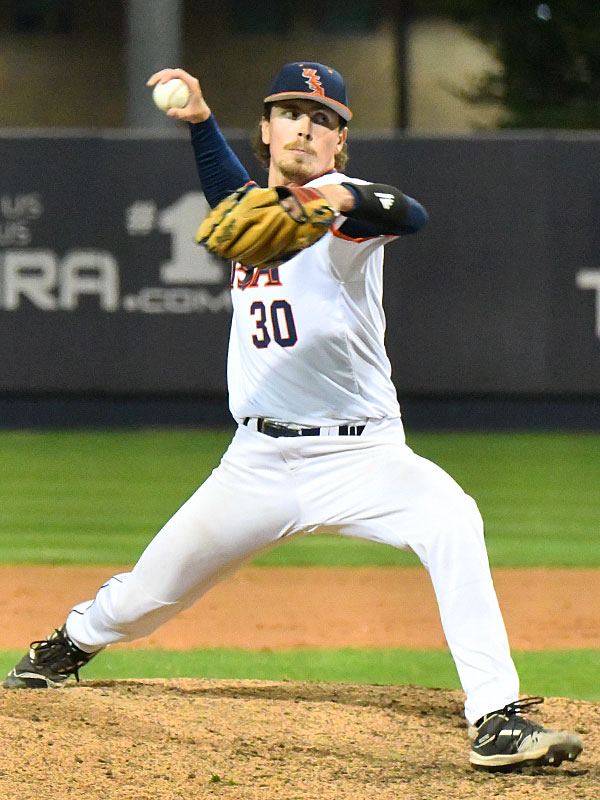 John Chomko pitched two-plus scoreless innings in UTSA’s 14-8 victory over Texas State on Tuesday, April 26, 2022, at Roadrunner Field. – photo by Joe Alexander