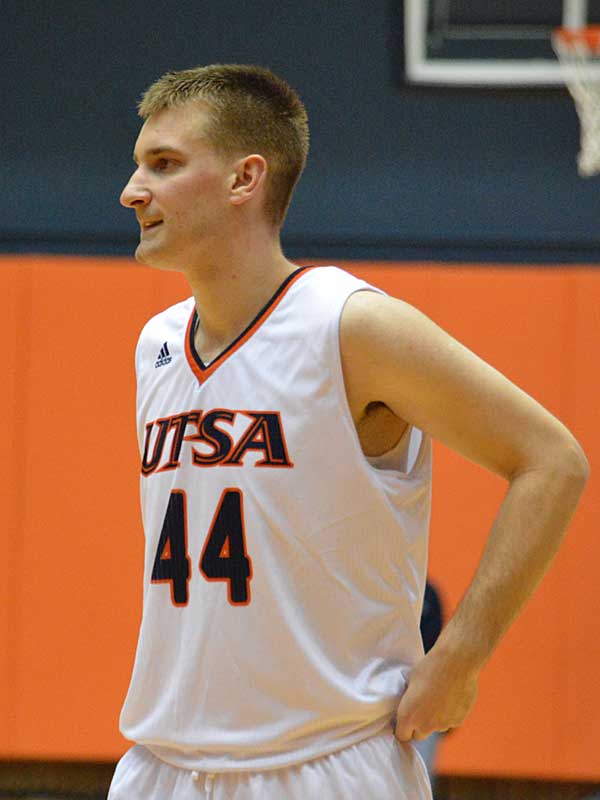 UTSA forward Luka Barisic had nine points and five rebounds in 19 minutes at the Convocation Center on Wednesday, Oct. 30, 2019. The Roadrunners beat Texas A&M International 89-60 in an exhibition game. – photo by Joe Alexander