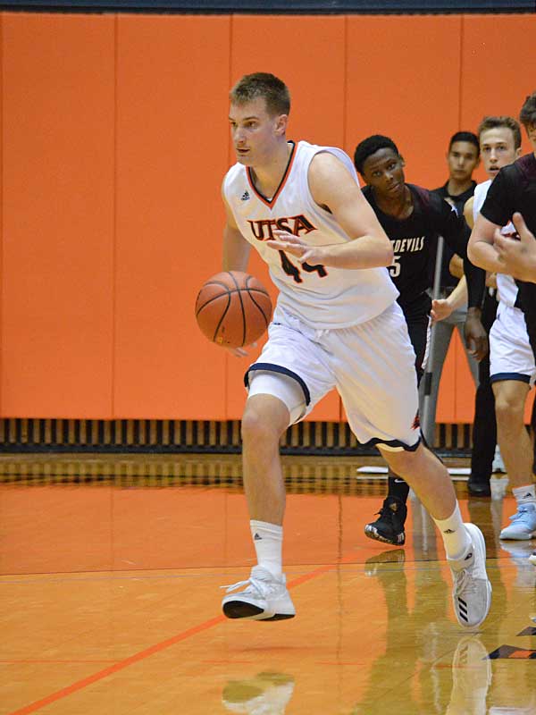 UTSA forward Luka Barisic had nine points and five rebounds in 19 minutes at the Convocation Center on Wednesday, Oct. 30, 2019. The Roadrunners beat Texas A&M International 89-60 in an exhibition game. – photo by Joe Alexander