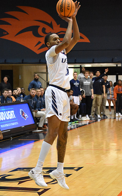 UTSA-BKC-UAB-20230218-DJ-Richards-2402 Published February 18, 2023 at 500 × 800 in UTSA-BKC-UAB-20230218-DJ-Richards-2402 DJ Richards. UTSA lost to UAB 83-78 in Conference USA men’s basketball on Saturday, Feb. 18, 2023, at the Convocation Center. – Photo by Joe Alexander DJ Richards. UTSA lost to UAB 83-78 in Conference USA men’s basketball on Saturday, Feb. 18, 2023, at the Convocation Center. – Photo by Joe Alexander