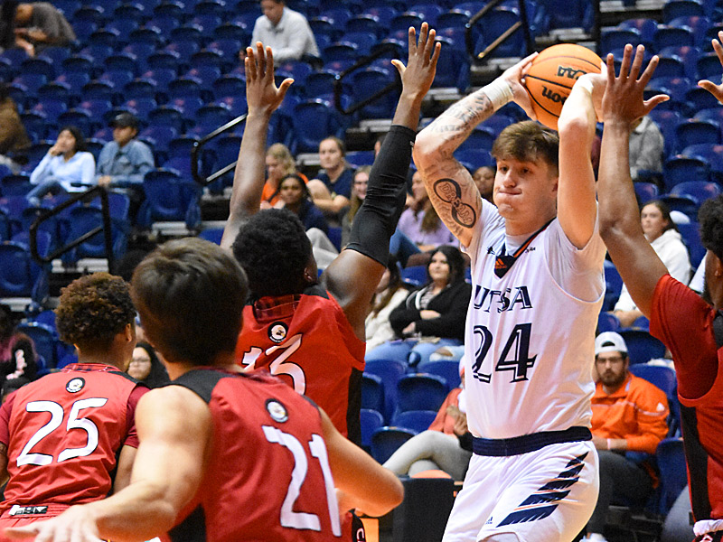UTSA-BKC-UIW-20221128-Jacob-Germany-5419 Published November 28, 2022 at 800 × 600 in UTSA-BKC-UIW-20221128-Jacob-Germany-5419 Jacob Germany. UTSA beat Incarnate Word 68-62 in men’s basketball on Monday, Nov. 28, 2022, at the UTSA Convocation Center. – Photo by Joe Alexander Jacob Germany. UTSA beat Incarnate Word 68-62 in men’s basketball on Monday, Nov. 28, 2022, at the UTSA Convocation Center. – Photo by Joe Alexander