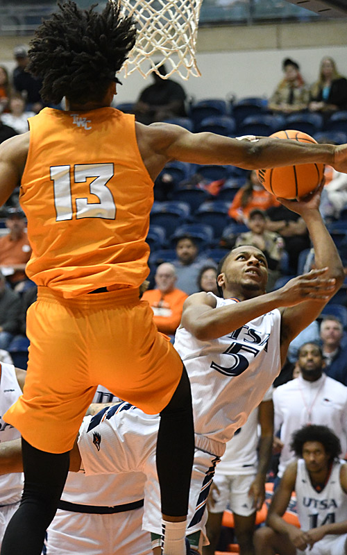 UTSA-BKC-UTEP-20230211-DJ-Richards-5063 Published February 11, 2023 at 500 × 800 in UTSA-BKC-UTEP-20230211-DJ-Richards-5063 DJ Richards. UTSA men’s basketball lost to UTEP 77-66 on Saturday, Feb. 11, 2023, at the Convocation Center. – Photo by Joe Alexander DJ Richards. UTSA men’s basketball lost to UTEP 77-66 on Saturday, Feb. 11, 2023, at the Convocation Center. – Photo by Joe Alexander