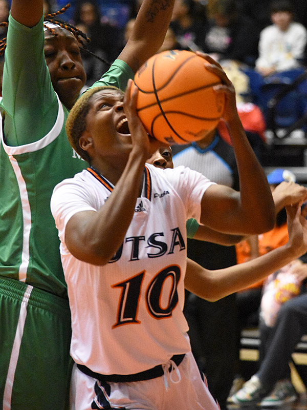 Queen Ulabo. North Texas beat UTSA 51-48 in Conference USA women’s basketball on Thursday, Jan. 26, 2023, at the Convocation Center. – Photo by Joe Alexander