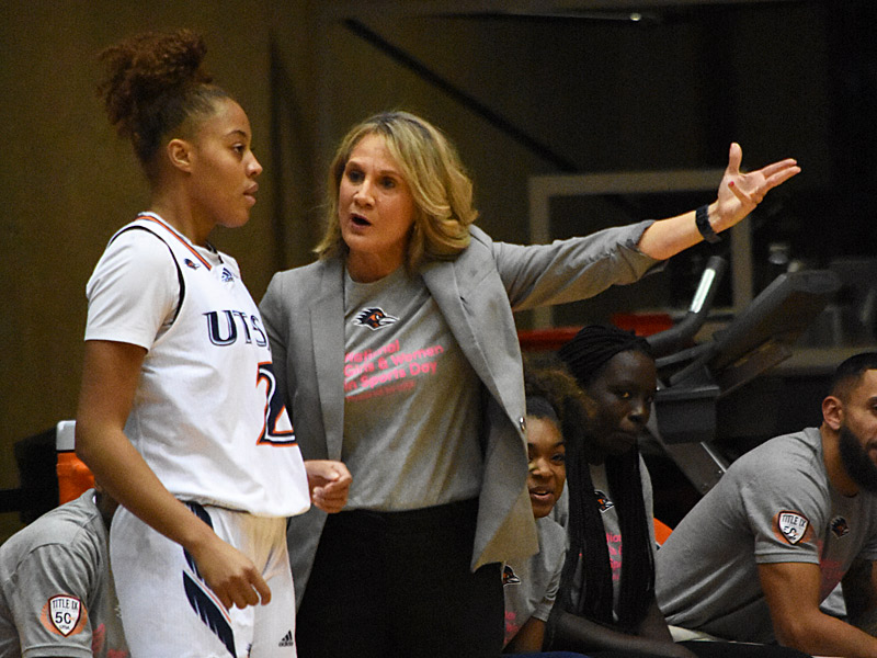UTSA coach Karen Aston. UTSA lost to Western Kentucky 73-67 in Conference USA women’s basketball on Thursday, Feb. 2, 2023, at the Convocation Center. – Photo by Joe Alexander