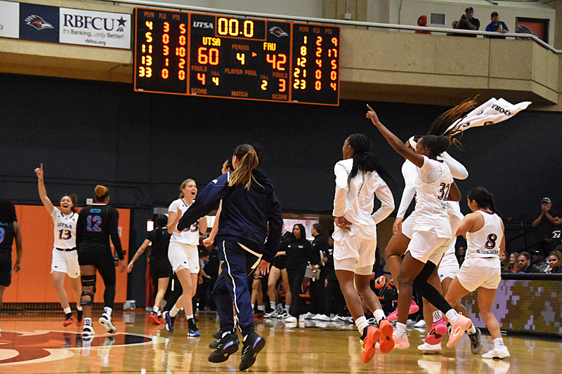 UTSA-BKW-celebration-20250301-3629 Published March 1, 2025 at 800 × 533 in UTSA celebrates women’s basketball regular-season title: photo gallery UTSA The UTSA women’s basketball teams celebrates at the Convocation Center after winning the 2024-25 American Athletic Conference regular-season title on Saturday, March 1, 2025. – Photo by Joe Alexander