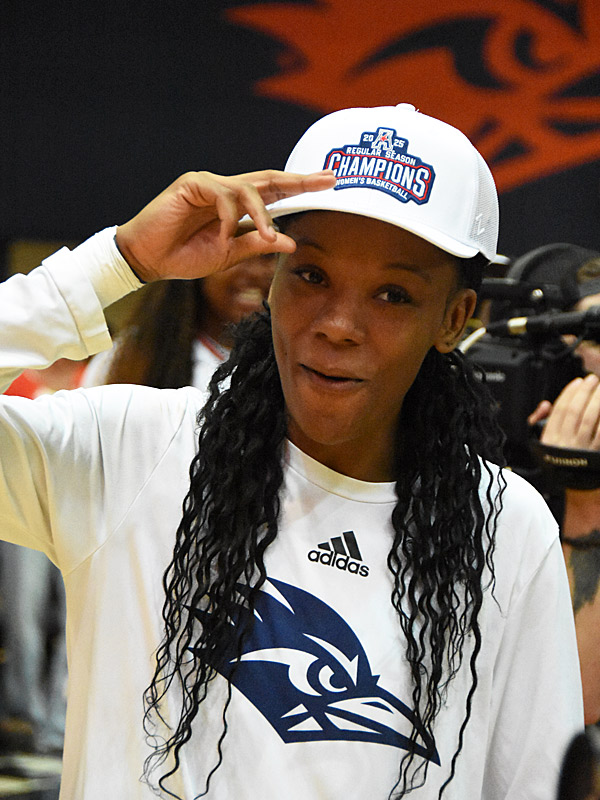 UTSA-BKW-celebration-20250301-3666 Published March 1, 2025 at 600 × 800 in UTSA celebrates women’s basketball regular-season title: photo gallery Aysia Proctor Aysia Proctor. The UTSA women’s basketball teams celebrates at the Convocation Center after winning the 2024-25 American Athletic Conference regular-season title on Saturday, March 1, 2025. – Photo by Joe Alexander