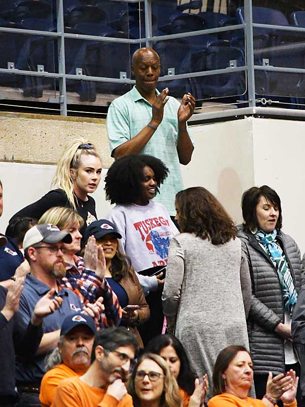 Derrick Gervin watches a UTSA men’s basketball game at the UTSA Convocation Center on Feb. 13, 2020. Gervin holds the UTSA men’s basketball single-season scoring record (718 points in 1984-85). He is the second player in program history to have his jersey retired. – photo by Joe Alexander