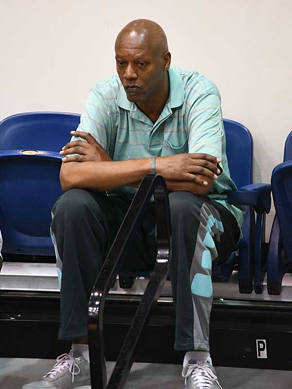 Derrick Gervin watches a UTSA men’s basketball game at the UTSA Convocation Center on Feb. 13, 2020. Gervin holds the UTSA men’s basketball single-season scoring record (718 points in 1984-85). He is the second player in program history to have his jersey retired. – photo by Joe Alexander