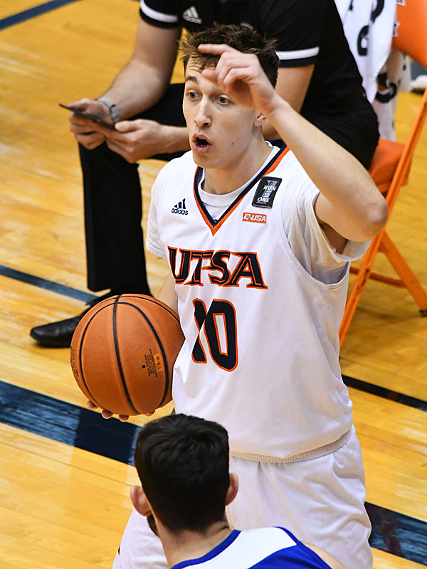 UTSA guard Erik Czumbel, playing against Our Lady of the Lake on Dec. 20, 2020, at the Convocation Center, started two of UTSA’s first six games of the season and averages 7.2 points. – photo by Joe Alexander