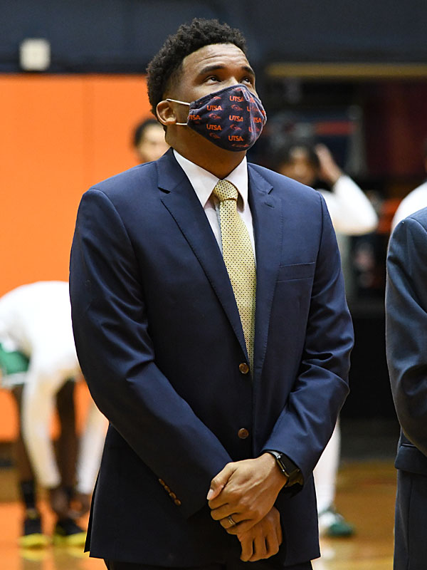 UTSA-North-Texas-20210108-Adam-Hood-6400 Published January 8, 2021 at 600 × 800 in UTSA-North-Texas-20210108-Adam-Hood-6400 UTSA assistant men’s basketball coach Adam Hood at Friday’s game against North Texas at the Convocation Center. – photo by Joe Alexander UTSA assistant men’s basketball coach Adam Hood at Friday’s game against North Texas at the Convocation Center. – photo by Joe Alexander