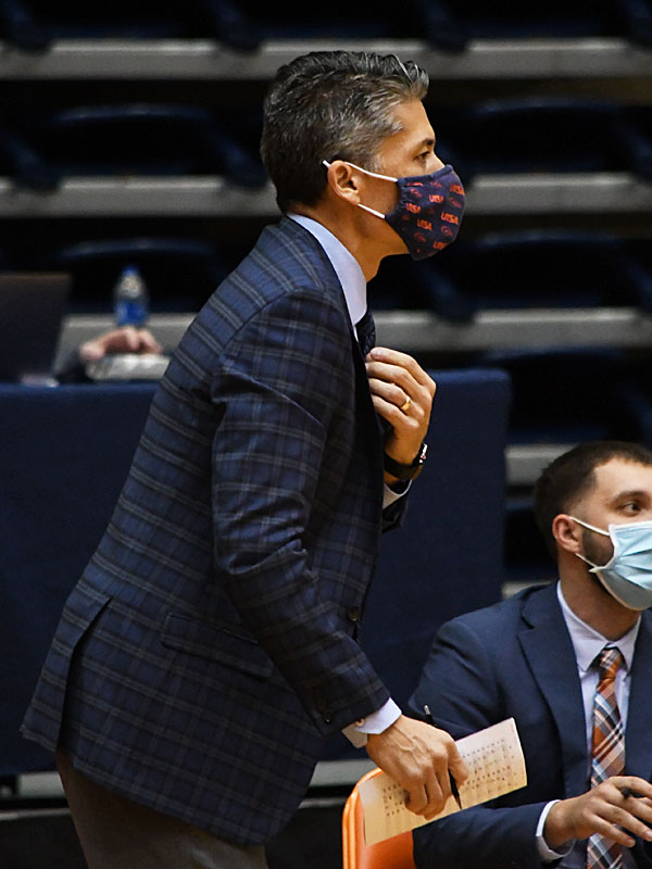 UTSA-North-Texas-20210108-Mike-Peck-6763 Published January 8, 2021 at 600 × 800 in UTSA-North-Texas-20210108-Mike-Peck-6763 UTSA men’s basketball associate head coach Mike Peck at Friday’s game against North Texas at the Convocation Center. – photo by Joe Alexander UTSA men’s basketball associate head coach Mike Peck at Friday’s game against North Texas at the Convocation Center. – photo by Joe Alexander