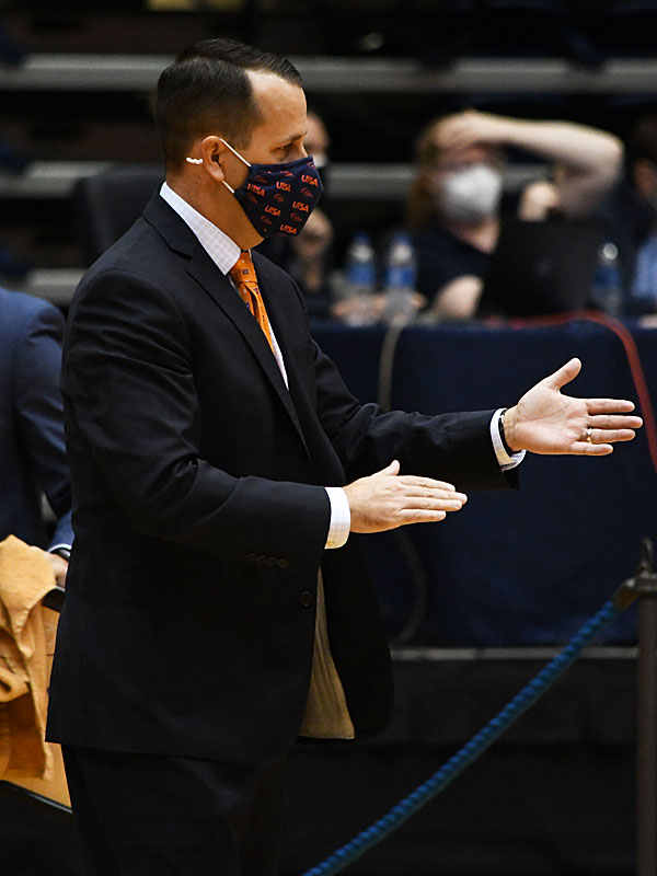 UTSA-North-Texas-20210108-Scott-Thompson-6801 Published January 8, 2021 at 600 × 800 in UTSA-North-Texas-20210108-Scott-Thompson-6801 UTSA men’s basketball assistant coach Scott Thompson at Friday’s game against North Texas at the Convocation Center. – photo by Joe Alexander UTSA men’s basketball assistant coach Scott Thompson at Friday’s game against North Texas at the Convocation Center. – photo by Joe Alexander