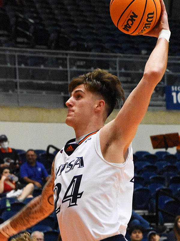 Jacob Germany. UTSA men’s basketball beat Rice 82-71 on Saturday, March 5, 2022, at the Convocation Center in the Roadrunners’ final game of the regular season. The Conference USA Tournament starts Tuesday. – photo by Joe Alexander