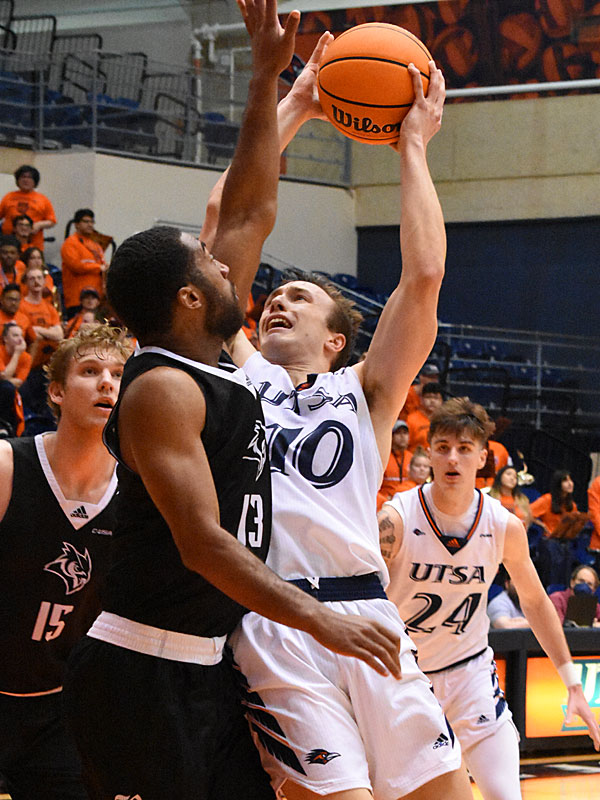 Erik Czumbel. UTSA men’s basketball beat Rice 82-71 on Saturday, March 5, 2022, at the Convocation Center in the Roadrunners’ final game of the regular season. The Conference USA Tournament starts Tuesday. – photo by Joe Alexander