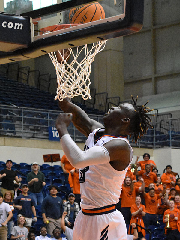 Dhieu Deing. UTSA men’s basketball beat Rice 82-71 on Saturday, March 5, 2022, at the Convocation Center in the Roadrunners’ final game of the regular season. The Conference USA Tournament starts Tuesday. – photo by Joe Alexander