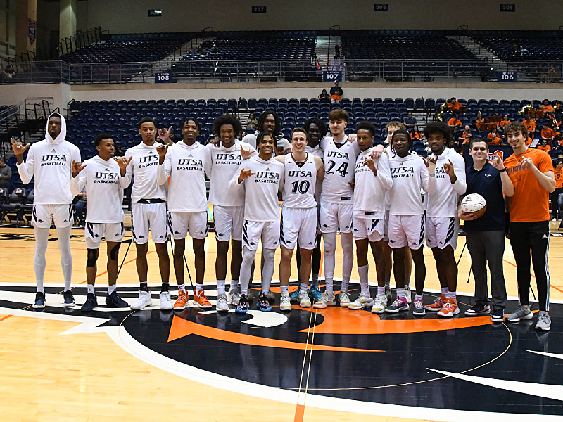 Seniors Erik Czumbel (10) and Jacob Germany (24). UTSA men’s basketball honored its seniors Thursday, March 2, 2023, in the final home game of the regular season. The Roadrunners beat Charlotte 78-73 at the Convocation Center.