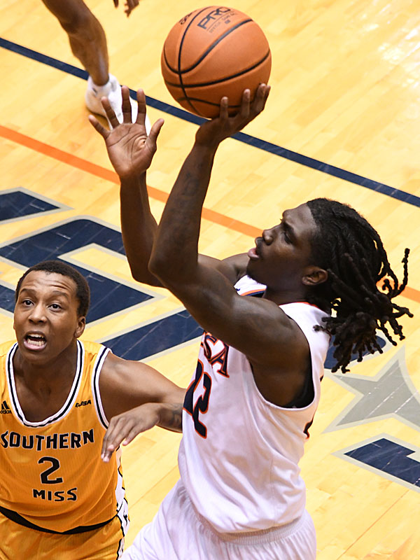 Keaton Wallace had 18 points and 8 rebounds as UTSA beat Southern Miss 70-64 in Conference USA action at the Convocation Center on Friday, Jan. 22, 2021. – photo by Joe Alexander