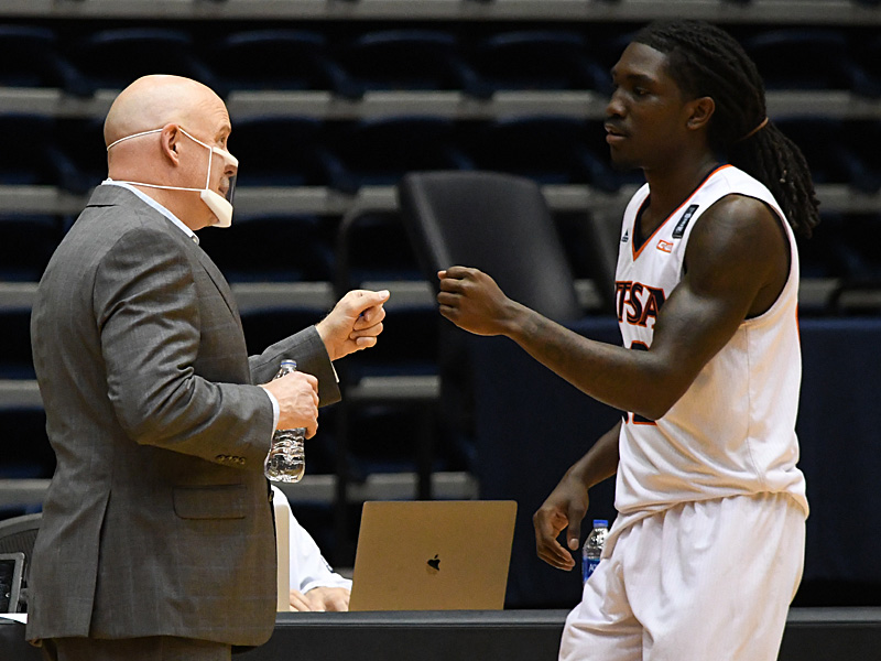 UTSA senior Keaton Wallace goes to the bench in the second half Thursday in the Roadrunners’ final home game of the season. – photo by Joe Alexander