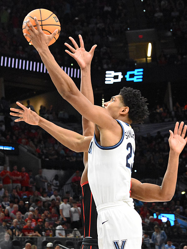 Villanova’s Jermaine Samuels goes in for a shot. Villanova beat Houston 50-44 in the NCAA tournament South Region on Saturday, March 26, 2022, at the AT&T Center to clinch a spot in the Final Four. – photo by Joe Alexander